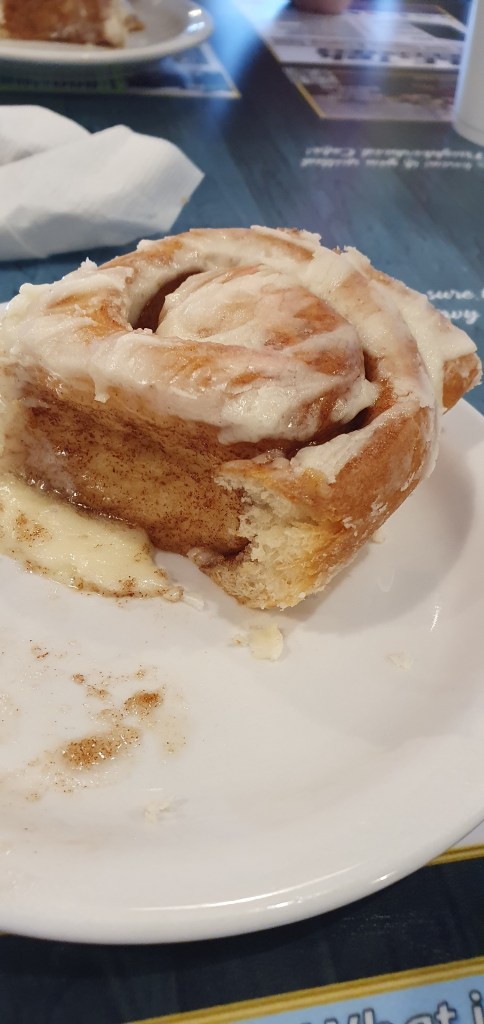 Imagine our surprise when we discovered that every guest receives a complimentary cinnamon roll! From that moment on, I was hooked on anything cinnamon—cinnamon rolls, cinnamon swirls, you name it! The breakfast menu was a treasure trove of American classics like Chicken and Waffles, Breakfast Burritos, Biscuits and Gravy, and the hearty Country Breakfast—dishes we rarely encounter in the UK.