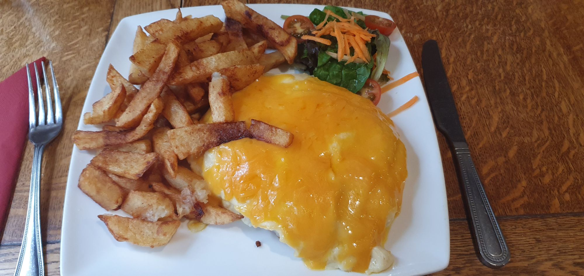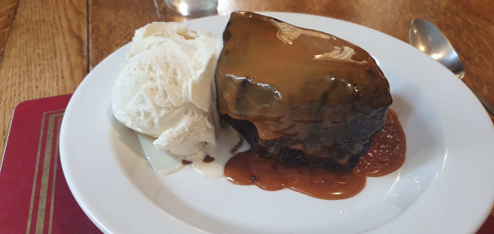 You’ll probably wonder what we ordered, so let me delve in. My husband and I both went for the Chicken Parmesan which was a butterflied whole chicken breast coated in breadcrumbs topped with lashings of cheese sauce and grated cheese, finished off with perfect chips, crispy on the outside and fluffy on the inside, and a salad. My dad and brother chose the hefty mixed grill, now this was a monster of a dish, both in terms of the food on the plate, and the price! It came with black pudding, 6oz rump steak, lamb steak, pork steak, sausages, gammon, fried eggs, mushrooms, grilled tomato, peas and chips….it makes me feel hungry typing that all up! I think my mum ordered the chicken and pineapple curry, which had chicken, pineapple, peppers, and sultanas in a medium spiced sauce, with rice or chips (or half and half (the best choice if you ask me)). It’s accompanied by some crispy poppodoms and mango chutney, salivating!