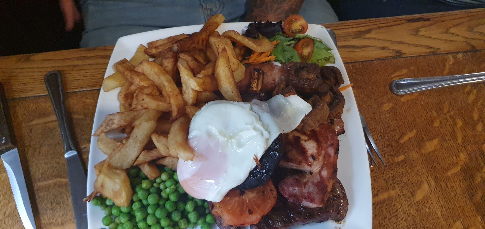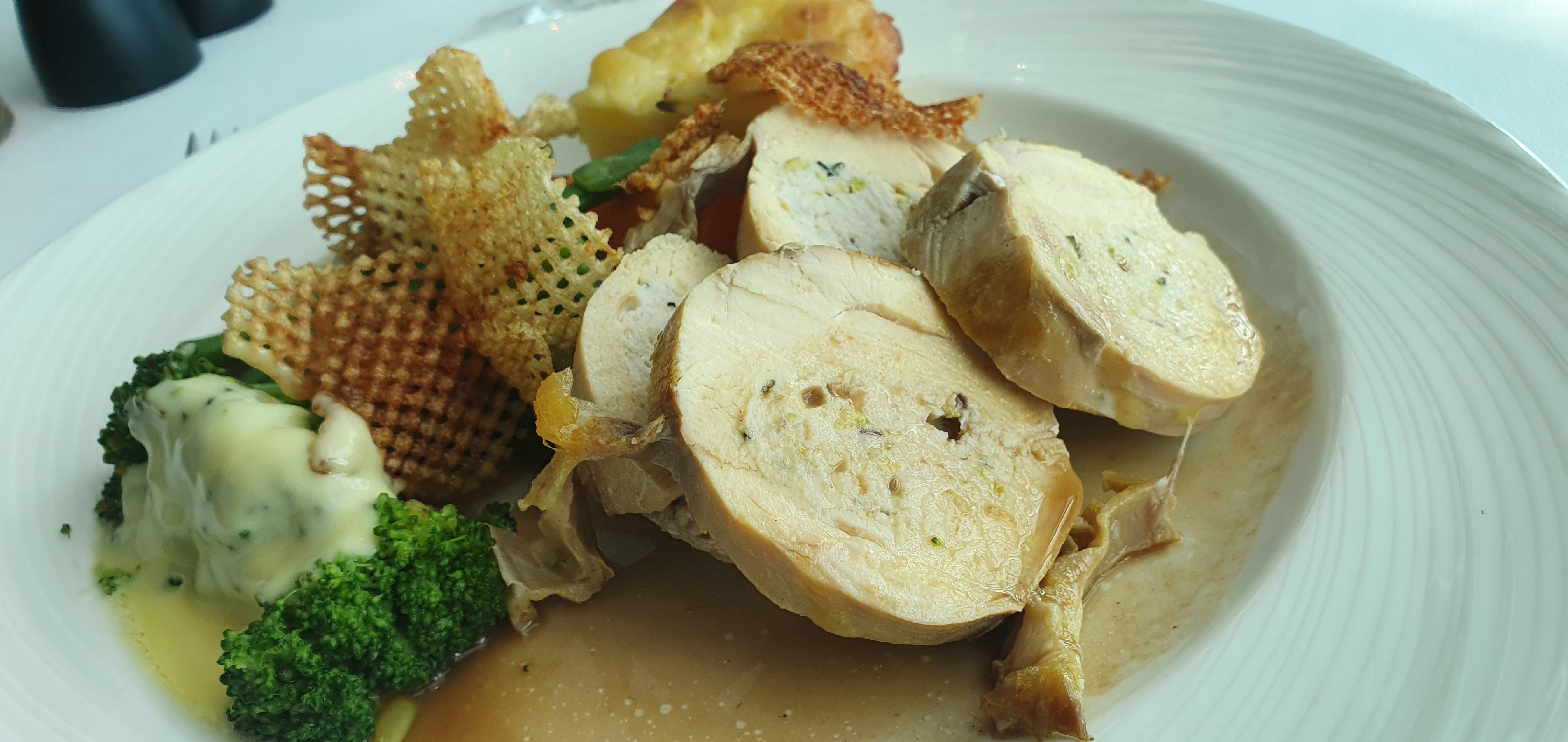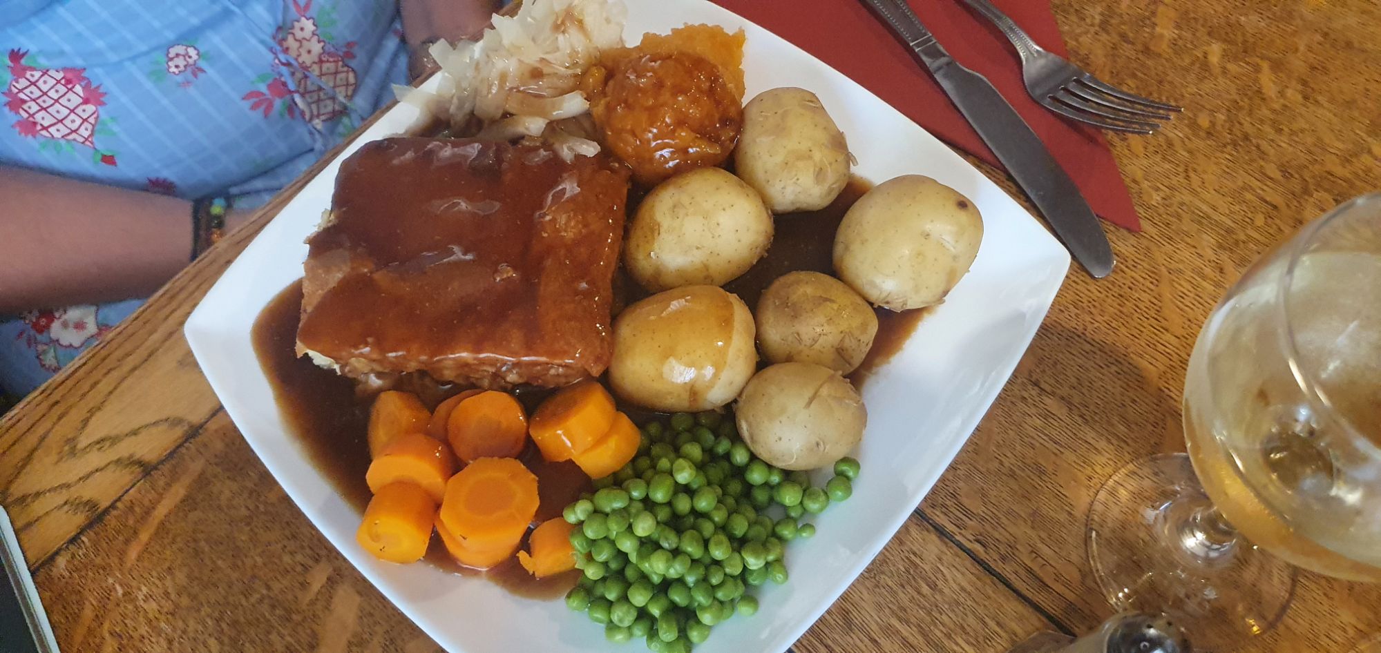 Trio of Carvery Meats; Turkey, Pork and Beef. Served with Roast Potato, Sweet Potato, Parsnips, Sprouts, Peas, Roast Onion, Roast Carrots, Yorkshire Pudding, Stuffing, Pigs in Blankets, and Sausagemeat with Lashings of Gravy.