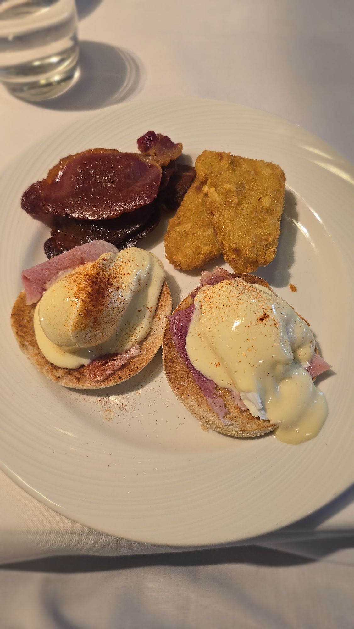 However, there were a few downsides. Breakfast food temperatures didn’t quite match the consistency of the evening meals. My eggs benedict, which I had most mornings, was often just warm enough to avoid being considered cold. On the first morning, we experienced a significant delay in receiving our food. A table of the same size seated next to us ordered, received, and finished their meal before we even got ours. On the second evening of the cruise, we had booked a table for 5:15 pm, only to find that the doors to Coral didn’t open until 5:30 pm.