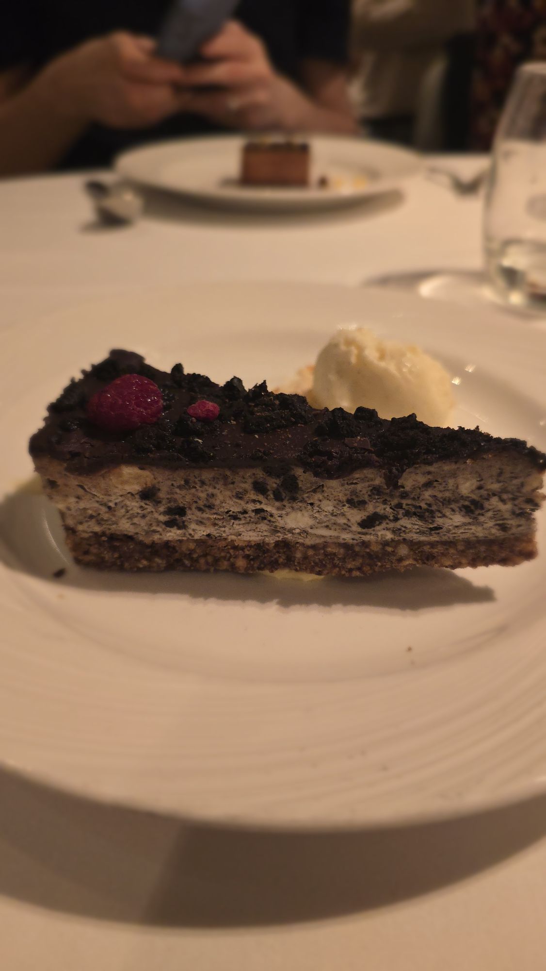 • Cookies and Cream Cheesecake, with Vanilla Ice Cream and Biscuit Crumb