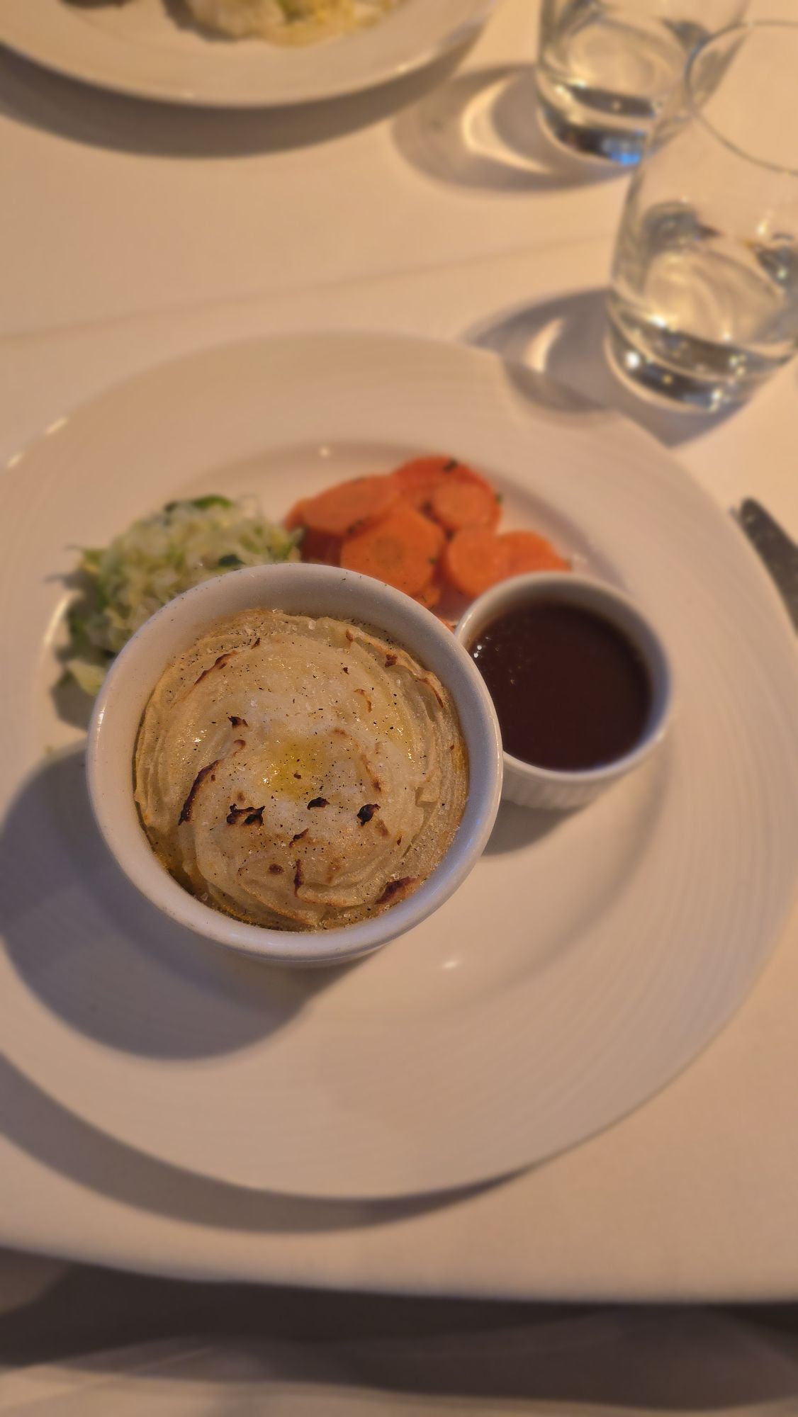 Starting with the positives: I didn’t encounter any meals that I disliked. There were a few elements that didn’t quite hit the mark for me, but overall, I was happy to try most things. The service throughout most of the cruise was impeccable. The staff were attentive, ensuring our glasses were always filled with water, efficiently taking orders, and bringing our food promptly. The evening meals were served at the perfect temperature, not too hot and not too cold, allowing us to dive in right away.