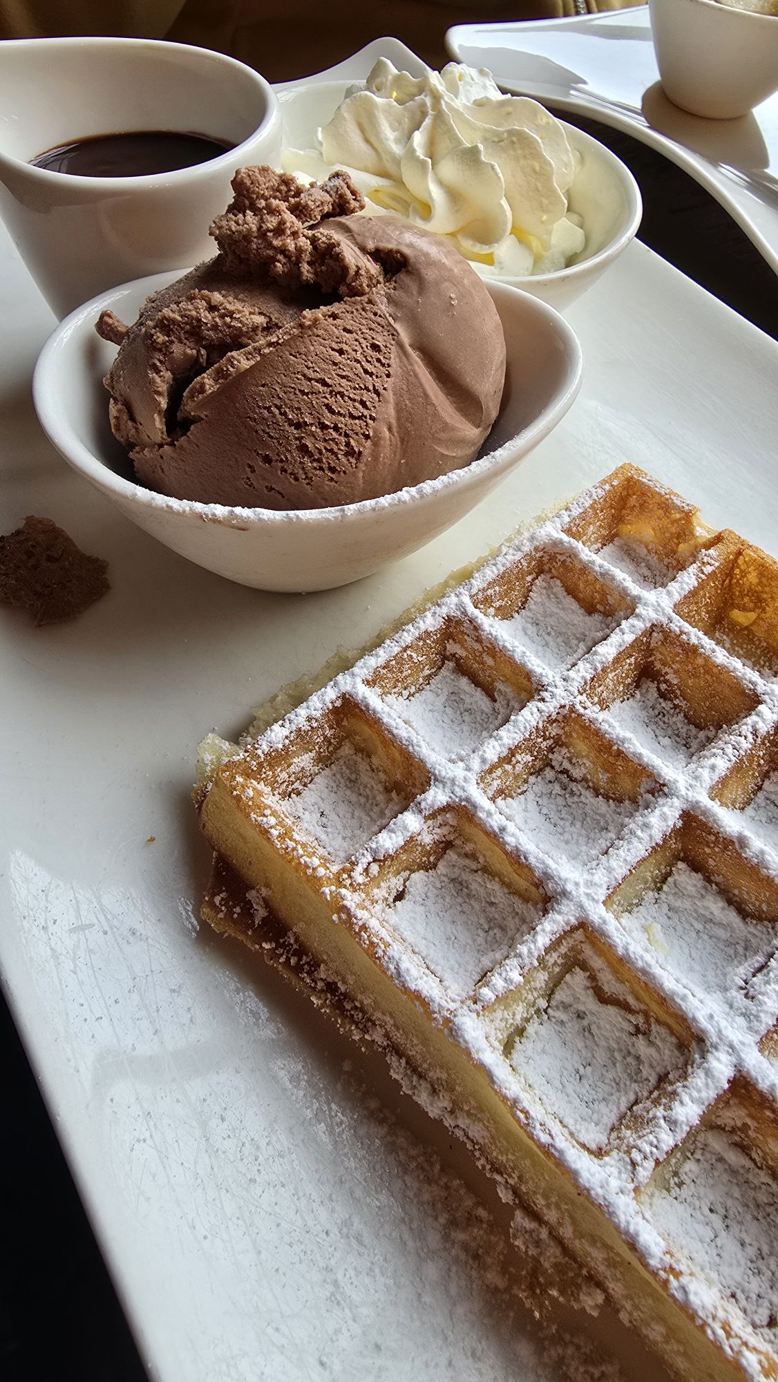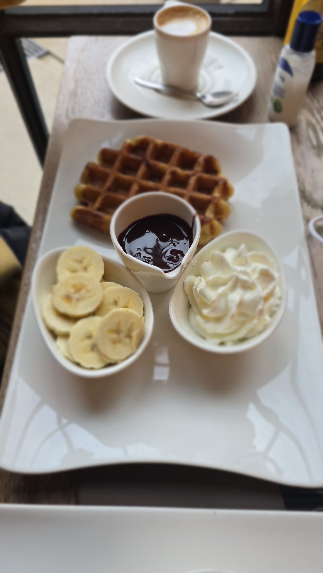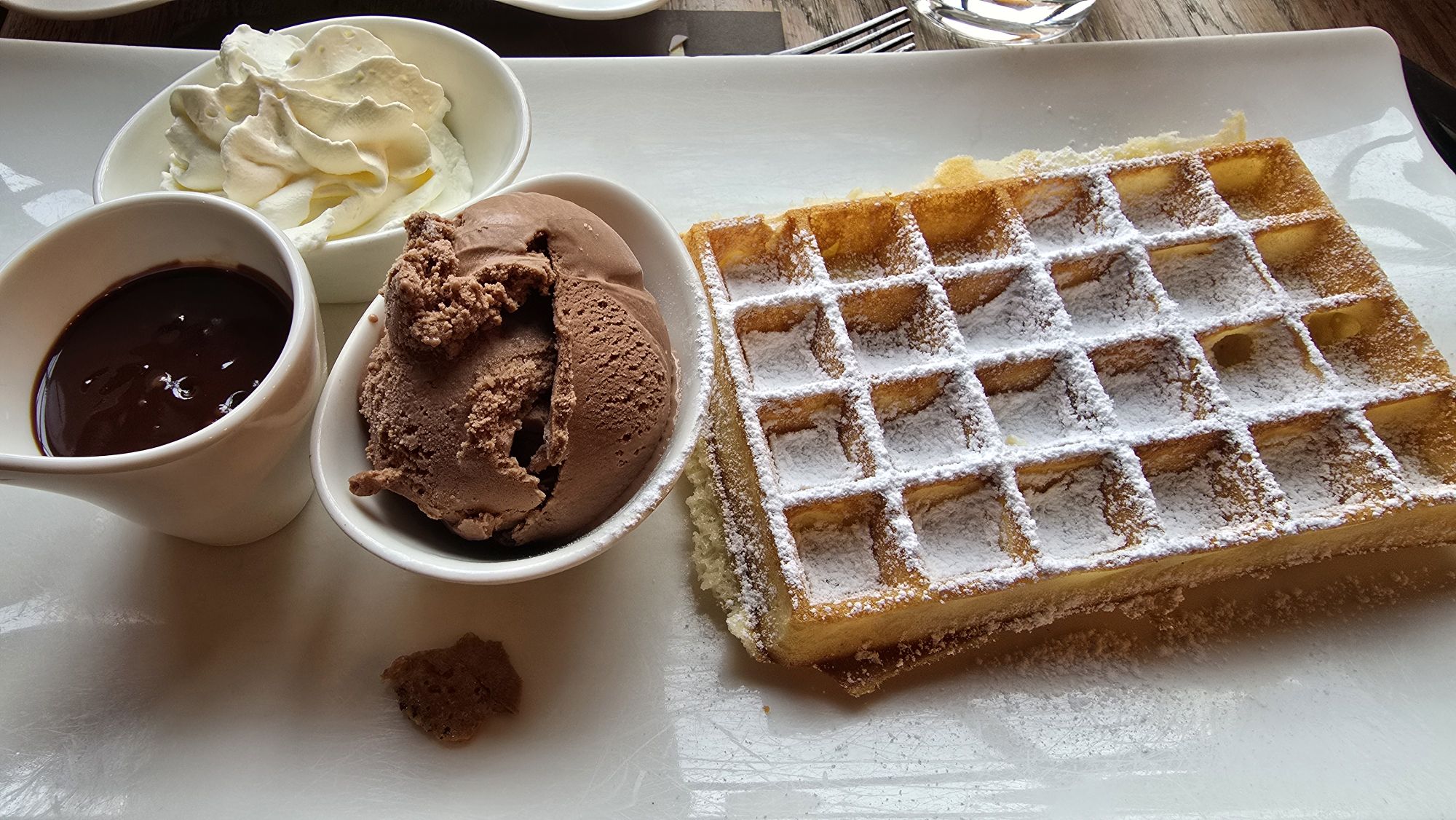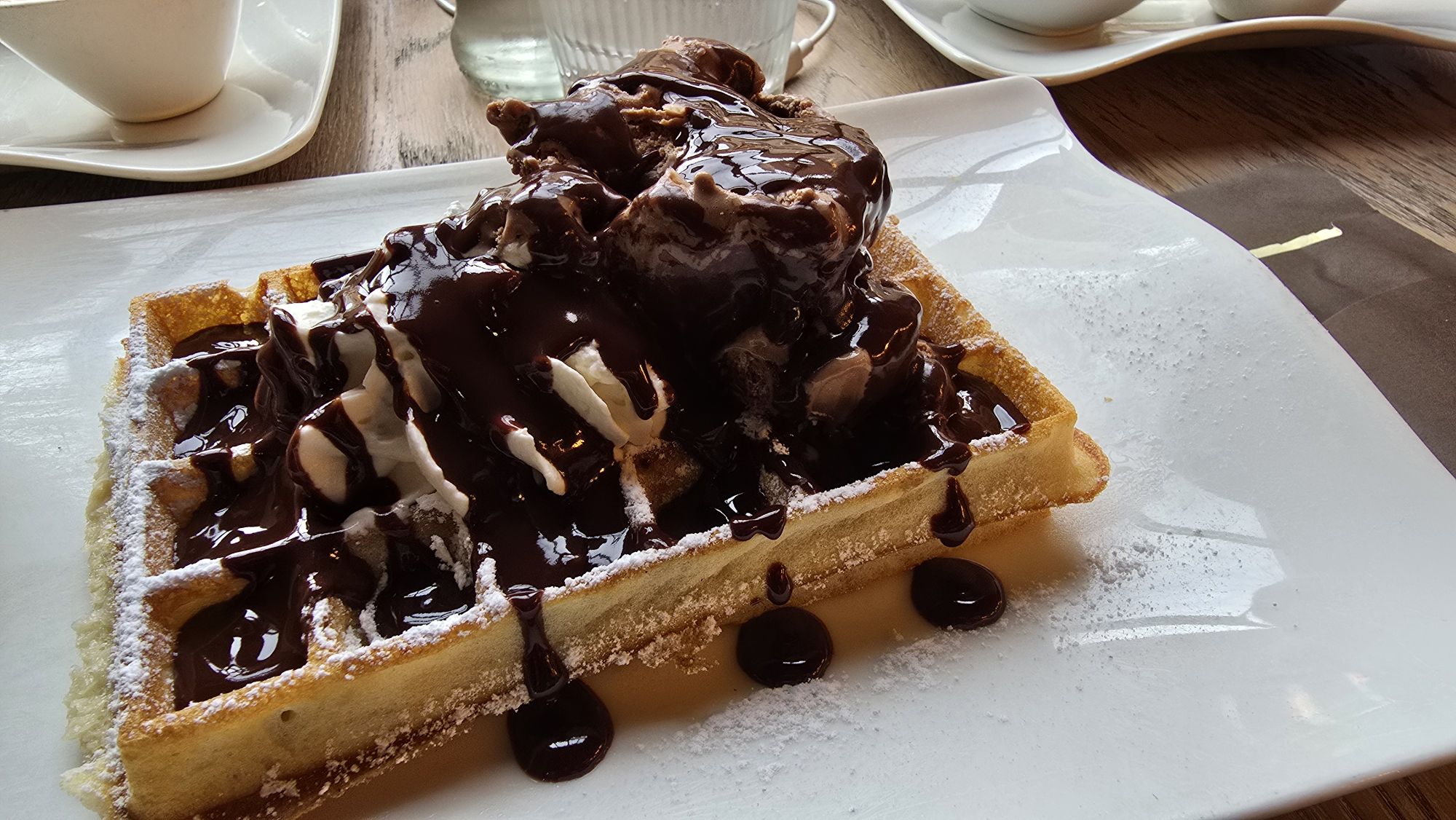 During our visit, I couldn’t resist the Chocolate Madness—a decadent combination of chocolate ice cream, chocolate sauce, and whipped cream. My husband went for the Banana Bonanza, while my father-in-law opted for the Chuck Berry. Each of us was thoroughly impressed, and as repeat visitors (it was our second time here!), my husband and I knew exactly why this spot has won our hearts. At around €14 per waffle, the prices felt fair for such a delectable treat.