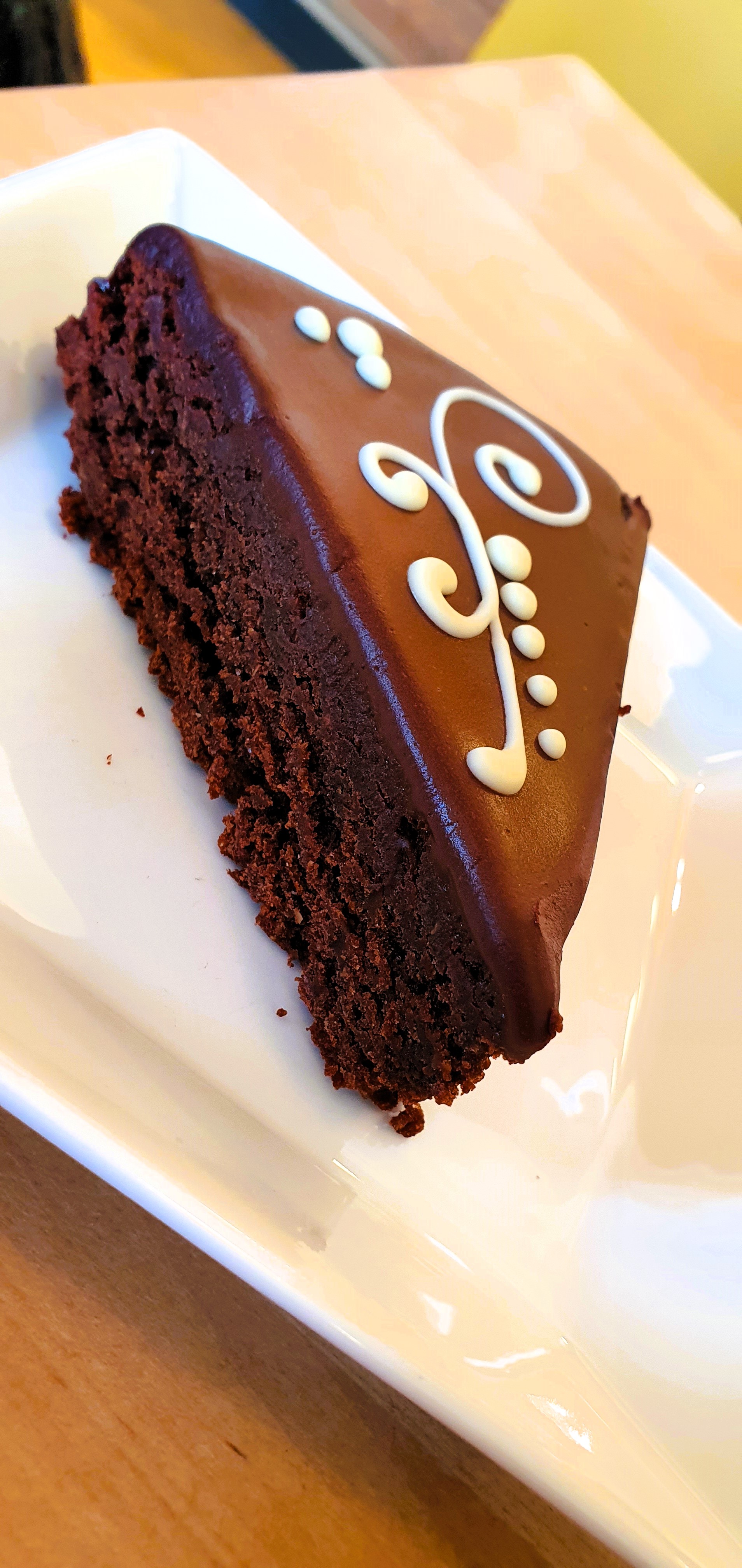 Though the menu of wood-fired pizzas and Italian favourites like mortadella, pancetta and lasagne tempted us, we kept it light — all thanks to the promise of a shipboard feast later. Instead, we eyed up the patisserie proudly displayed at the counter. One decadent slice of chocolate cake called my name, and it didn’t disappoint. It wasn’t quite on par with the “world’s best chocolate cake” we sampled in Lisbon (more on that soon!), but it held its own. My husband went for a coffee, rich, warming, and just what he needed.
