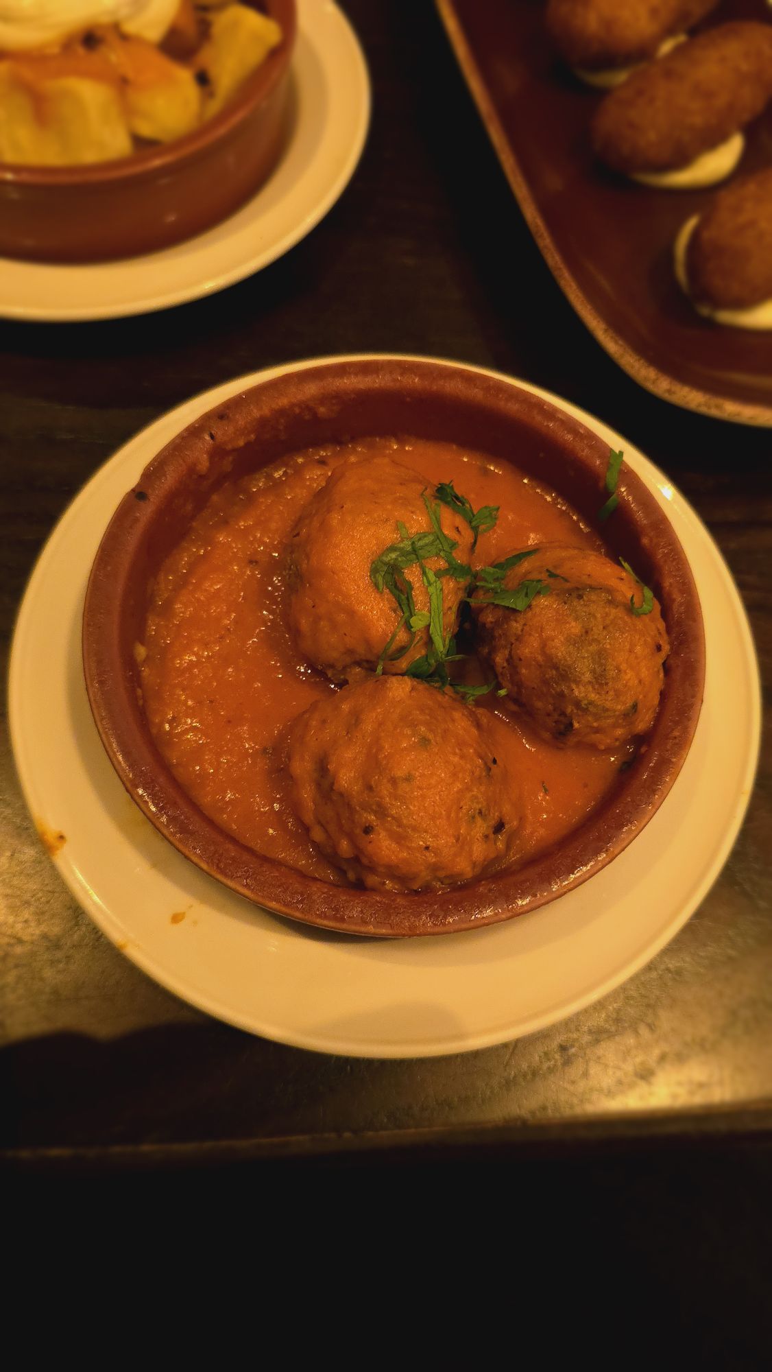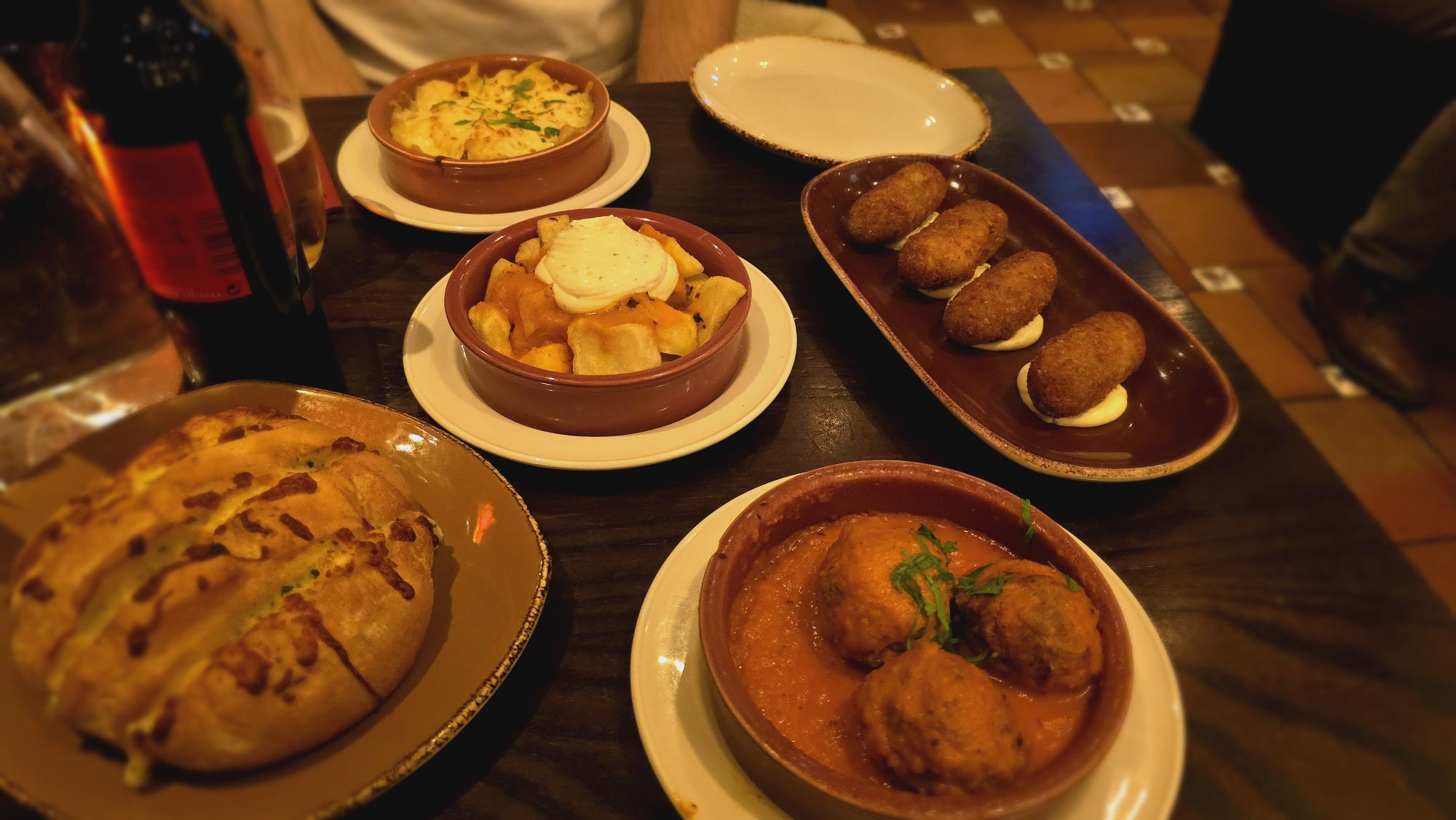 “During our five-day visit to Edinburgh, we found ourselves one evening at Café Andaluz on George IV Bridge, ready to indulge in their vibrant spread of tapas. The menu was brimming with tempting choices, and it didn’t take long before our table was laden with a feast: garlic cheese loaf, albondigas, croquetas de jamón, patatas bravas, and patatas gratinadas. After swiftly devouring those, we couldn’t resist a second round — another garlic cheese loaf, more patatas bravas, and a bubbling queso de cabra al horno.