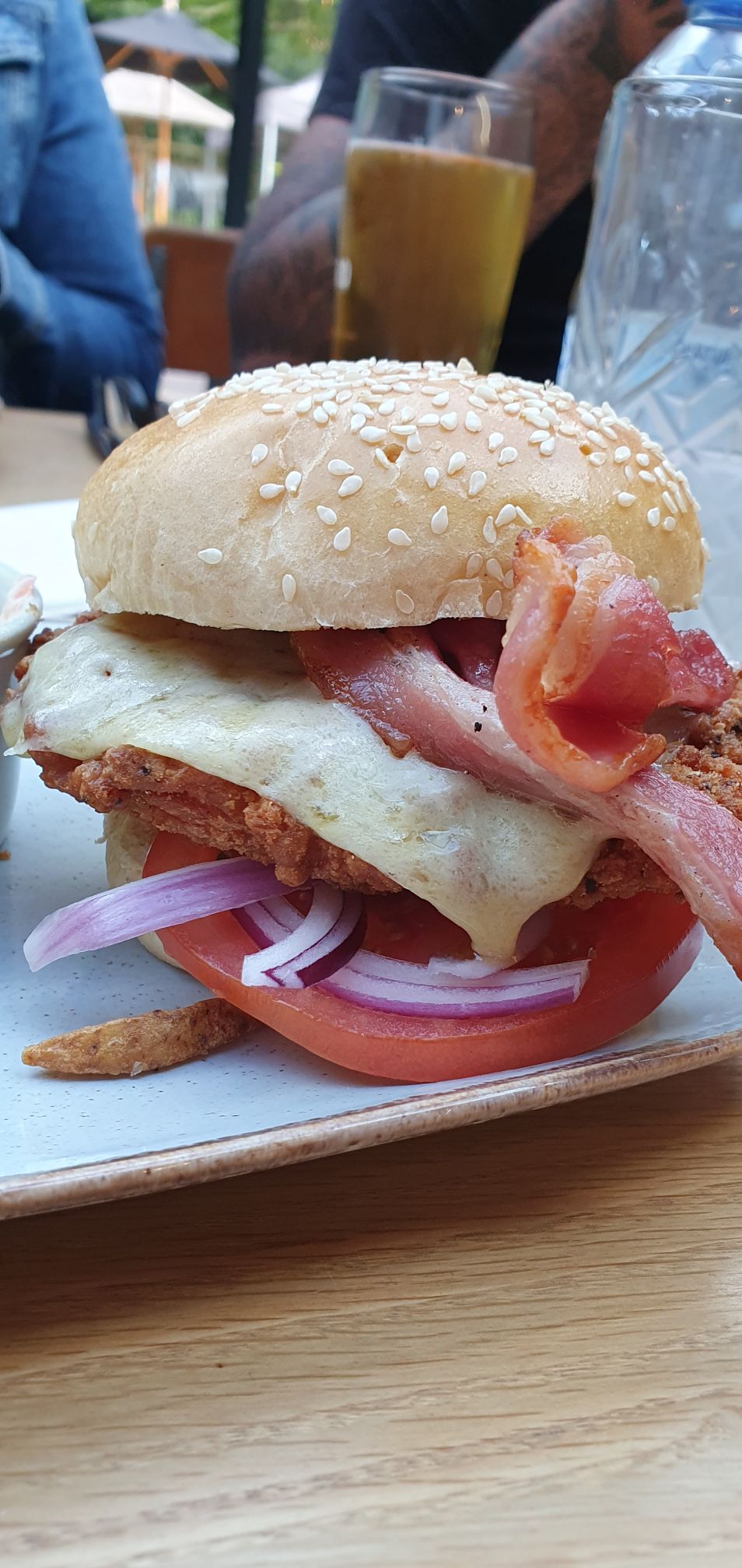 🥊 Round 1: Hearty Hits from the Harbour: In the blue corner, The Hats and Barrels come out swinging with a menu full of crowd-pleasers – from hanging chicken skewers to juicy burgers and a roasted root vegetable gratin that packs a punch. We landed here on one of our first nights and were knocked out by the flavours so much we came back for round two. The star of the night? The Roasted Root Vegetable Cheesy Bake, which had my husband and mum cheering in delight. I went for the chicken burger with bacon and cheese, backed up by cheesy garlic bread so indulgent it practically scored a TKO.