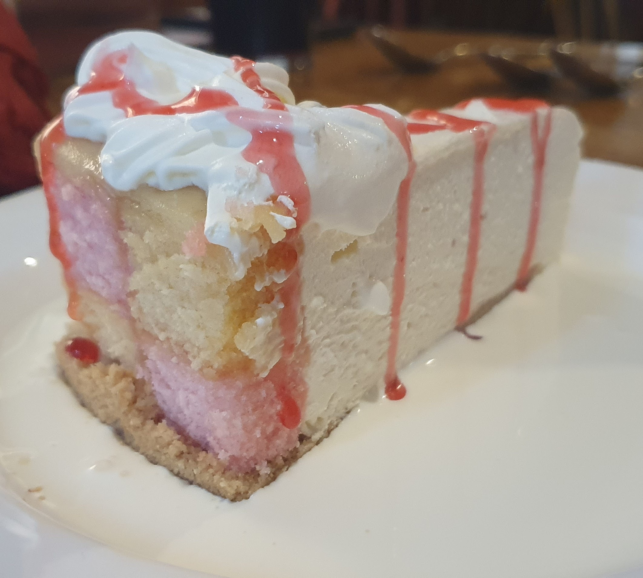 Then…then you have the desserts, and to this day, I’m pretty sure this place is where my husband has had his favourite ever dessert. A Battenberg cheesecake, yes you heard that right, a vanilla cheesecake but it had slices of Battenberg round the outside. Oh, and the sticky toffee pudding was a right slab, drenched in sticky toffee sauce and 2 scoops of vanilla ice cream. Presentation wise, nothing to complain about here it was plated elegantly, yet also homely at the same time.