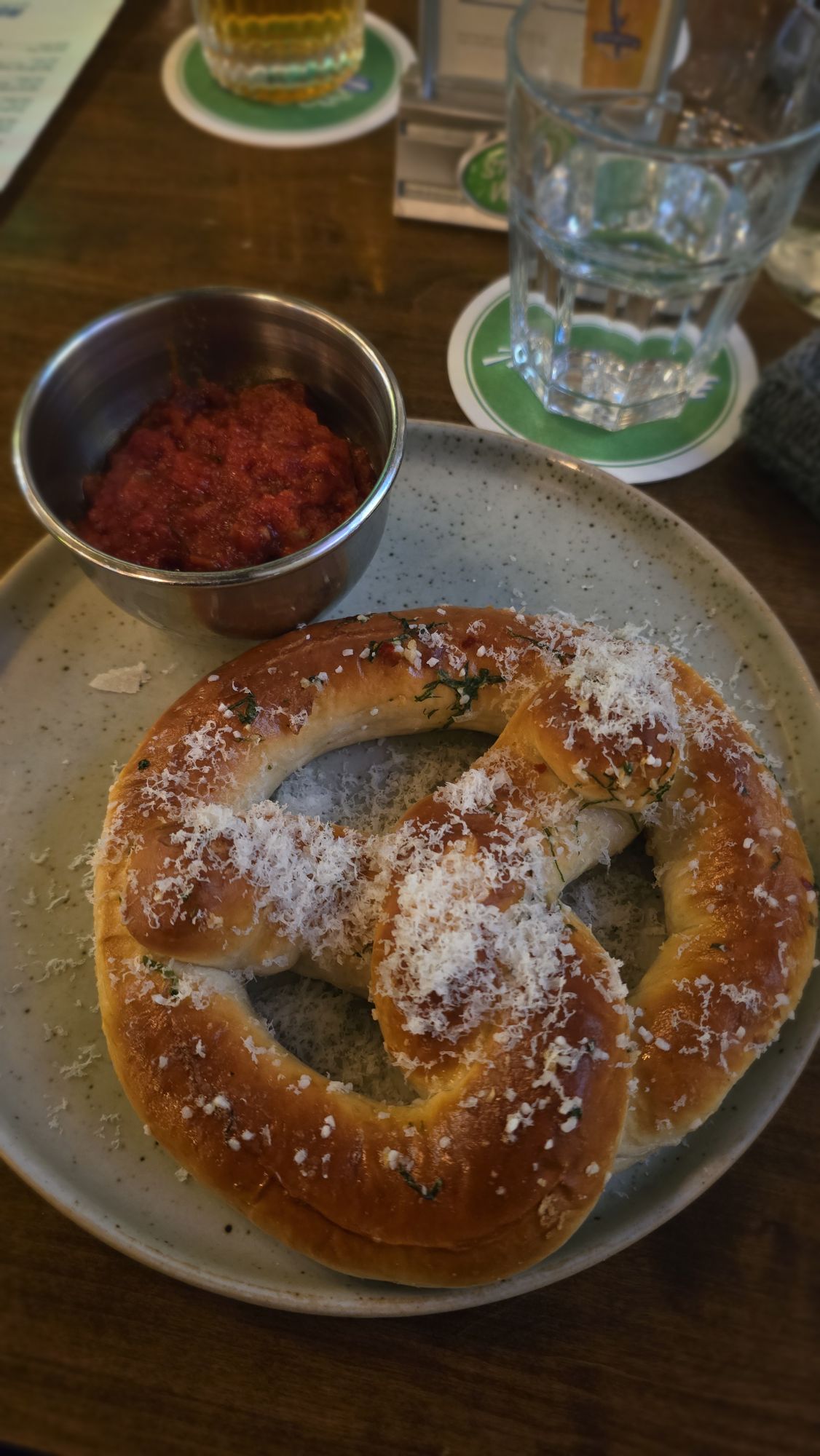 • Pretzel starter with marinara dip