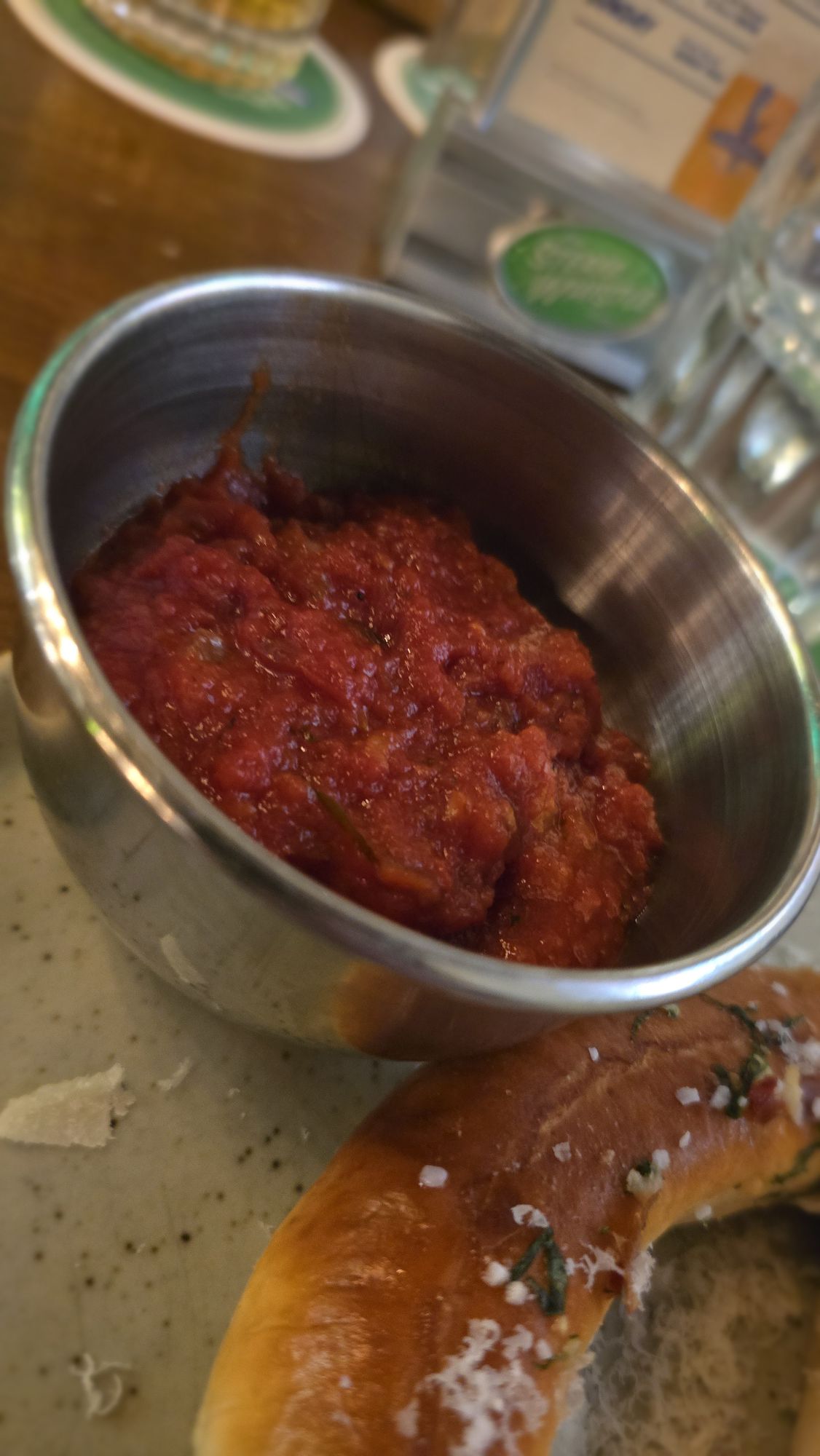We started with the pretzel entrée served with marinara dip. The portion was enormous — definitely shareable — and packed with carb-heavy comfort food goodness.