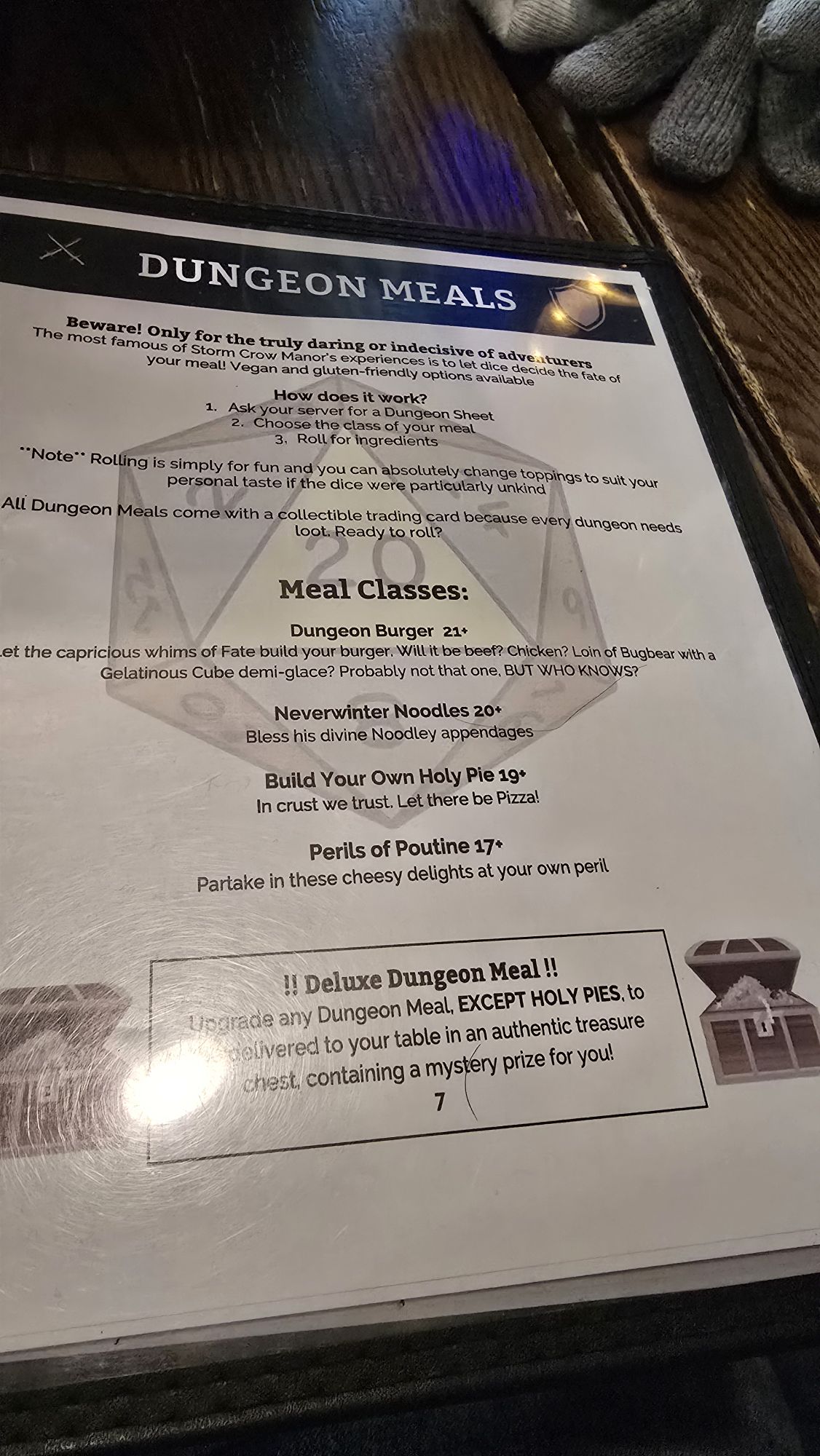 Storm Crow Manor is famous for its immersive nerd-themed décor and interactive dining experiences like the “Roll For Your Meal” concept.